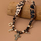 Bring bold western charm to your look with this statement charm necklace, featuring a silky leopard-print fabric band adorned with western icons including a cross, horseshoe, cowboy hat, boot and a horse. Perfect gift for the holidays, including Christmas, Mother's Day, Valentine's Day.
