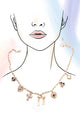 Charm necklace features a romantic blend of porcelain floral heart, soft matte bow, cross, and classic heart charms. Each element is thoughtfully placed on a delicate chain, offering a mix of vintage-inspired elegance and modern charm.