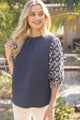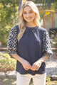 Experience the beauty of The Indigo Garden Blouse. Featuring a round neckline and floral embroidered short sleeves, this blouse offers a stylish and feminine touch. The textured knit body and mixed knit fabric provide comfort and versatility. With a back neck button and elastic loop closure, this blouse is perfect for any occasion. Available in sizes small to large. Model is 5' 8" and wears size small.