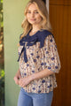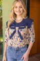Elevate your summer wardrobe with our Summer Storybook Top. Featuring a round neckline with band, half puff sleeve, and a solid contrast tweed yoke with bow detailing, this top is both chic and comfortable. Made from a floral printed woven fabric, it's the perfect addition to any outfit. Model is 5' 8" and wearing size Small.