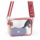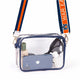 Trending Now! Game day style never looked so good, our new clear purse comes with 2 sets of straps! Change up your look between matching vegan leather or our new reversible patterned shoulder straps. What’s to love about the Bridget: * Crafted of clear vinyl and soft vegan leather, featuring brass hardware accents * Stadium Approved Sized at 8" x 6" x 2" * Includes 2 adjustable purse straps for changing up your look in a snap * Easily wipes clean * zipper closure