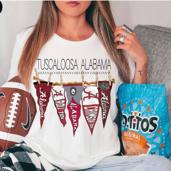 Show your Alabama pride with this AL Roll Tide pennant design shirt. Great for all the college students, and alumni alike!
