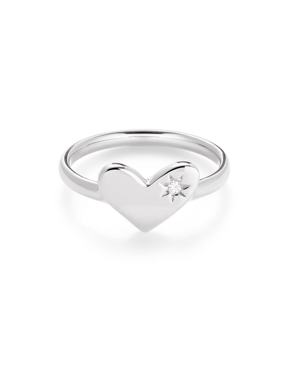 The most lovable shape with a wink of sparkle, the Ari Heart Sterling Silver Band Ring in White Sapphire is an elevated addition to your everyday stack. Designed to wear again and again (and again), this ring features a bright White Sapphire with plenty of shine and style.