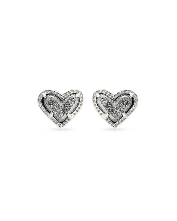 Ari Heart Silver Stud Earrings in Platinum Drusy