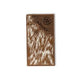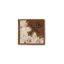 This Ariat wallet by M&F Western Products is genuine leather. Brown brindle calf hair on the front with a crazy horse overlay. Includes multiple sizes(Rodeo, Trifold, and Large Bifold)