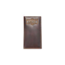 This Ariat wallet by M&F Western Products is genuine leather. Heat embossed crazy horse patch with Ariat name and logo. Includes multiple sizes(Rodeo, Trifold, and Bifold Pass Case)