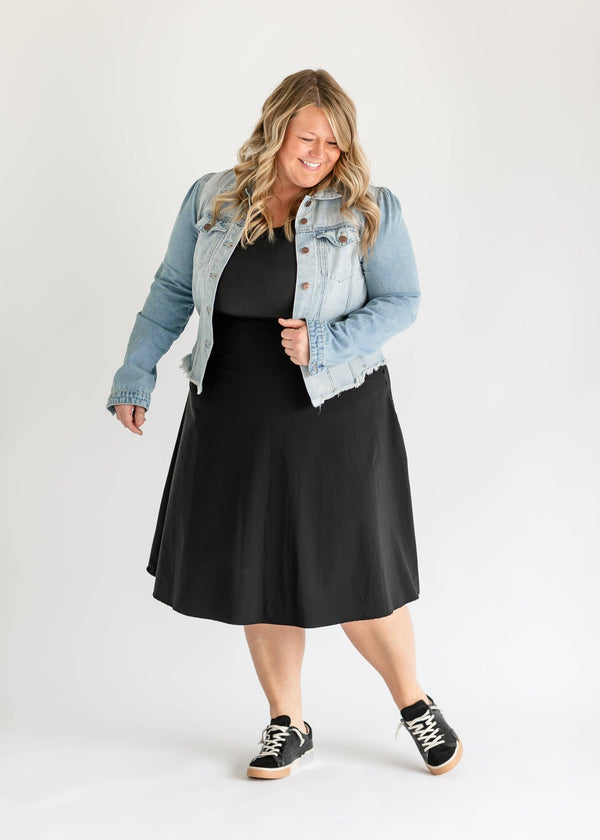 The perfect denim jacket is here. The Ariel Denim Jacket is an Inherit Design and it is back in a dark wash! This jacket is so unique and we are here for it! The buttons all have the Inherit logo badge stamped in the center, there is a raw hem, the slight princess sleeves elevate the look and we absolutely love the wash! There is slight distressing throughout the jacket and the medium wash on the bodice of the jacket is carried throughout, but the sleeves have a slightly darker medium wash! This will be a jacket you will reach for time and time again!