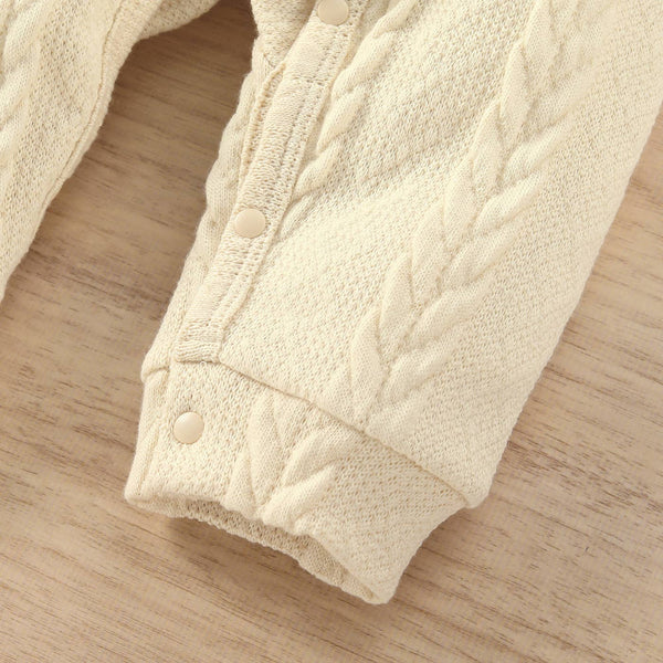 Wrap your little one in cozy comfort with our Baby Boy Cable Knit Jumpsuit. Made from a soft, solid cable knit fabric, this long-sleeve jumpsuit is perfect for keeping your baby warm and stylish. An essential piece for any little boy's wardrobe!