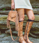 Hidden is a compact leather crossbody bag packed with fun fringe. It sits upright, has a small handle on top to hand carry, and also comes with an adjustable and removable crossbody strap. Add a touch of whimsy and flair with Hidden at your hip.