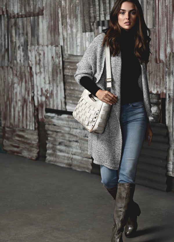 ORCHID is an imaginative handwoven handbag is both versatile and visually striking. The woven panels add dimension and the adjustable and removable long strap to make it into a crossbody.
