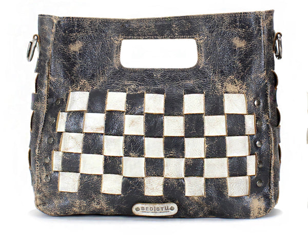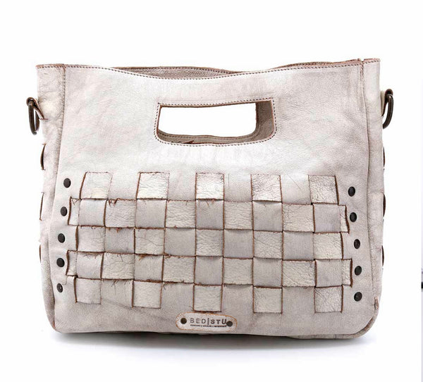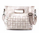 - Woven leather panels with flat stud details