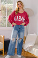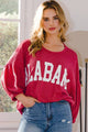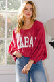 Celebrate football season in style with the Tuscaloosa Honey Top! This oversized, plus-size sweatshirt features a playful round neckline and long puff sleeves, perfect for showing off your Roll Tide pride. The bold state graphic adds a fun gameday vibe, while the soft blend of polyester, rayon, and spandex ensures cozy comfort. Available in sizes S to L, this top is a must-have for any fan ready to cheer on their team in comfort and flair.
