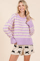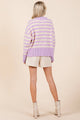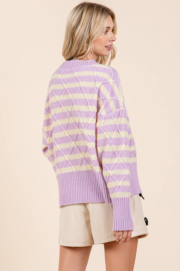 Spice up your wardrobe with this trendy sweater! It features a unique stripe print and argyle pattern, making it perfect for daily wear during fall and winter. The regular size and standard fit are complemented by a ribbed round neck, long sleeves, and a drop shoulder for maximum comfort. With ribbed cuffs and bottom, this sweater is both stylish and warm, making it a must-have addition to any fashion-forward woman's clothing collection.