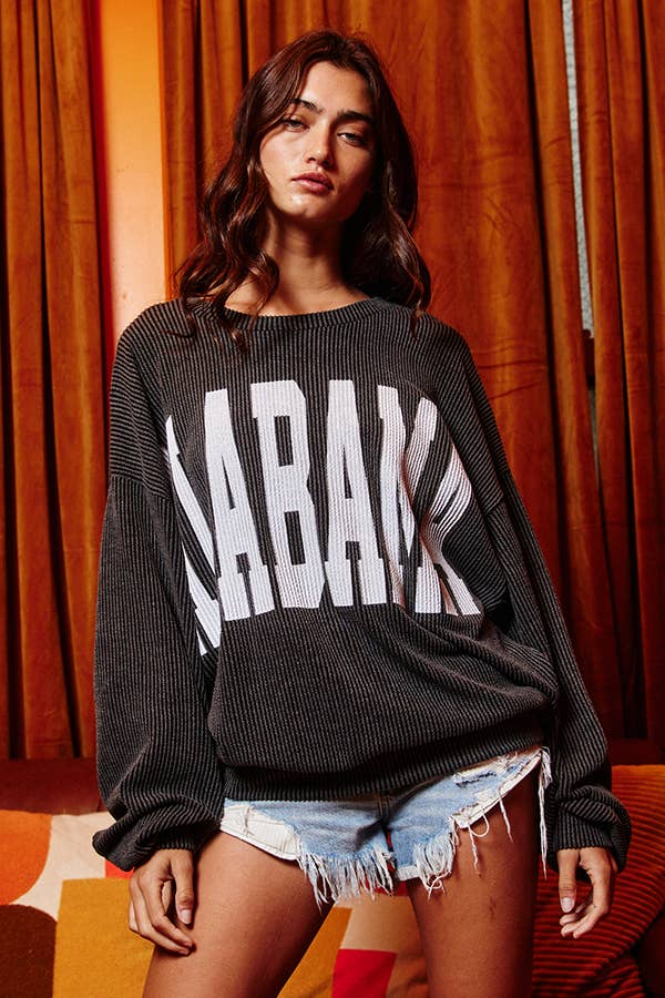 Stay warm and stylish with our Alabama Comfy Oversize Graphic Sweatshirt. Available in black or red, this sweatshirt is perfect for showing off your Crimson Tide pride. Made from soft, comfortable material, it's the perfect addition to any fan's wardrobe. Roll Tide!
