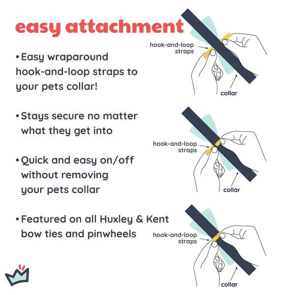 Each bow tie has a soft Velcro attachment which allows you to quickly and easily fasten to any collar. Velcro and go! Great for everyday wear or celebrating any occasion—from holidays to birthdays, to every special milestone in between!