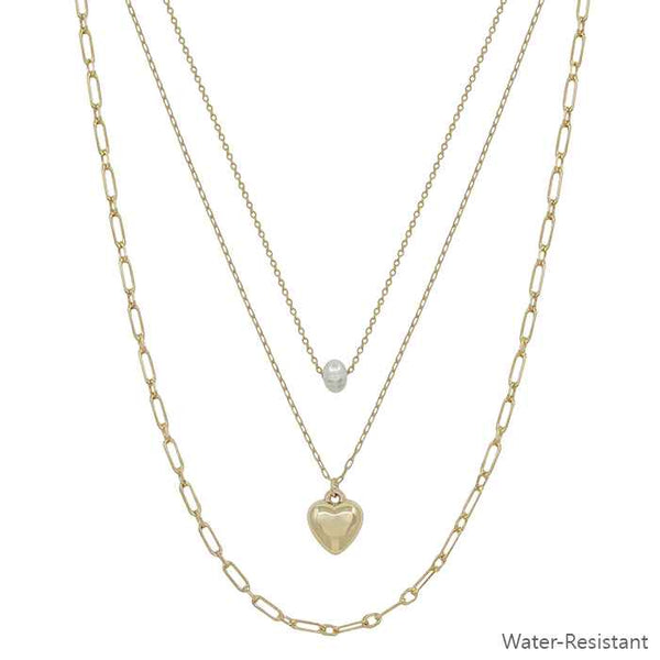 Indulge in luxury with our Water Resistant Gold Chain Necklace featuring a delicate Gold Puffy Heart and a lustrous Pearl. This 16"-18" necklace will add a touch of elegance to any outfit, making you stand out in any crowd. Feel confident and stylish with this must-have accessory!
