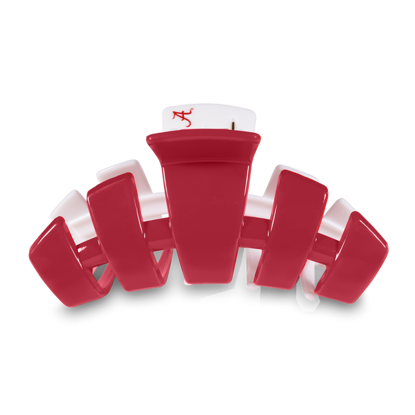 Say goodbye to breakable hair clips! We have perfected the hair tie and now have re-invented the clip. Each clip has bendable teeth that take back to shape, they work on all hair types and have a strong hold. Hold your hair and enhance your style with the new University of Alabama TELETIES Clip! Roll Tide! Large clips are great for thick hair. The large clip is 4.5 inches long.