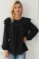 Women Eyelet Ruffle Shoulder Long Sleeve Blouse