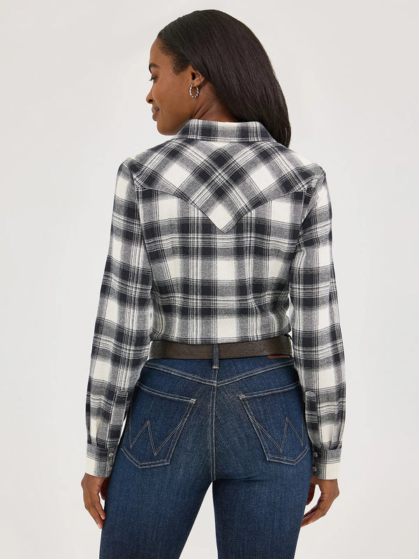Women's Essential Flannel Plaid Western Snap Shirt in Black Winter