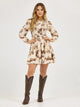 Everywhere you go, our Western-inspired take on the A-line silhouette will have you feeling just as good as you look. It features a flattering smocked bodice, a flowy skirt that lands just above the knee, and long sleeves with a little added volume at the shoulder with elastic at the wrists.