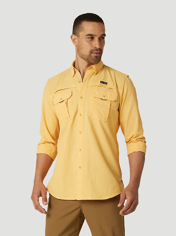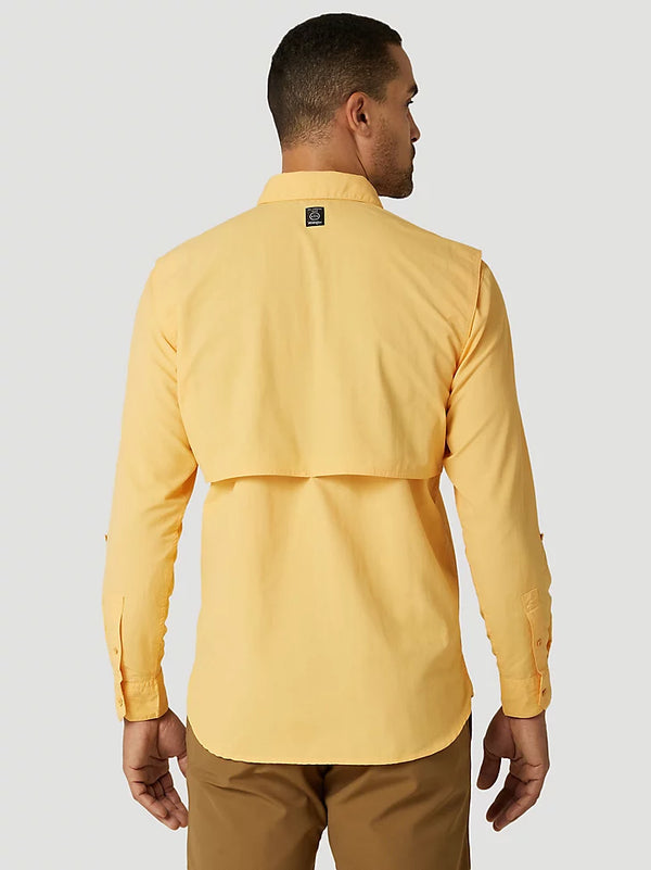 When you’re out in the elements and waiting for something to nibble the end of your line, the ATG Wrangler Angler™ men’s long sleeve shirt has you covered. This versatile shirt has everything you need, including a convertible sleeve system exclusive to Wrangler® and handy rod loops to free up your hands when you need them. Our angler shirt also features buttoned flap patch pockets and a utility loop for any essentials you can’t stow in your tackle box. Vents beneath the back yoke offer breathability and comfort no matter what the forecast has in store. Wear it with our men’s utility shorts or angler shorts, and you’ll be ready for fishin’ time.