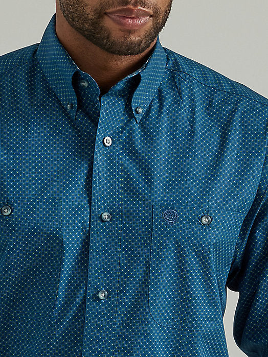 Wrangler George Straight Long Sleeve Button Down Two Pocket Shirt in Midnight Squares