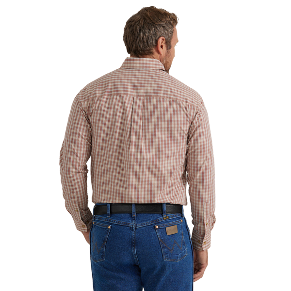 Wrangler Men's Long Sleeve Button Up in Burnt Tomato