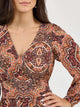 In our Ruffle Accent Maxi Dress, you’ll always impress. It’s made of a flowy, lightweight fabric you can wear in any season, with a dizzying mosaic print in brown and peachy hues. It features a sweet V-neck silhouette, billowy sleeves, as well as a long and loose tiered skirt with ruffles. All you need to complete the look is your favorite pair of cowgirl boots.