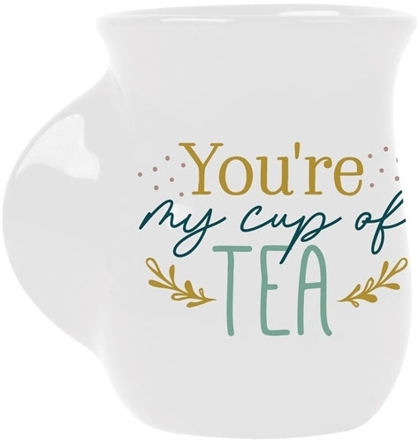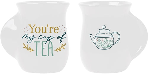Warm your heart and your hands with this uniquely designed, inspirational mug. Mug features a deep contoured pocket handle - molded so your hands can comfortable surround the mug for warmth. Designed for right-handed use.