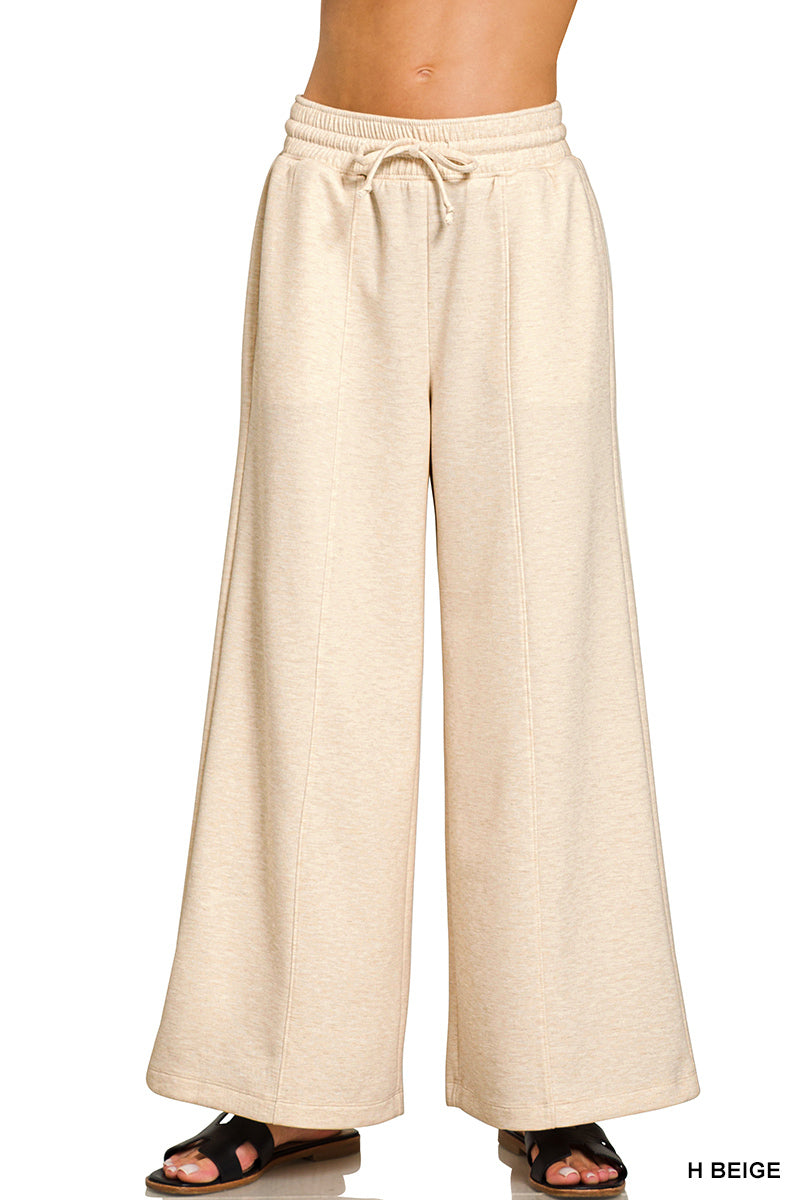 Pair with our Live In It Sweatshirt! Experience ultimate comfort and style with our Live In It Sweatpants! These SCUBA DRAWSTRING WIDE LEG PANTS feature POCKETS for added convenience. With a TOTAL WAIST of 26" and INSEAM of 28", these pants provide a flattering fit. Made with 90%POLYESTER, 6%RAYON, 4%SPANDEX, they offer a soft and stretchy feel. Perfect for lounging or running errands, they are a must-have for any wardrobe. Made in INDONESIA. *COLOR MAY VARY SLIGHTLY DUE TO MONITOR RESOLUTION.