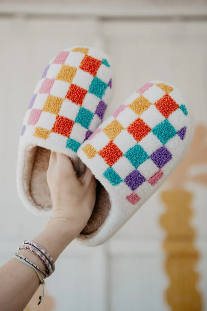 Designed with both fashion and coziness in mind, our slippers are a must-have addition to your collection. The unique multicolored checkered pattern sets them apart, making them a standout choice for those who appreciate trendy and comfy footwear. Treat your customers to the luxury of stylish relaxation and ensure your inventory reflects the latest in cozy fashion with these exclusive slippers from Katydid.