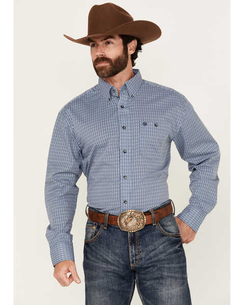 Wrangler Men's Striped Geo Print Western Shirt in Blue