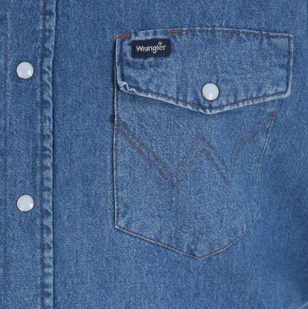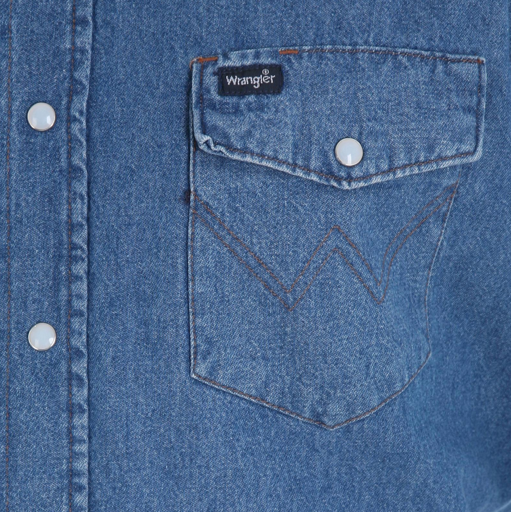 THE ORIGINAL WORK SHIRT FOR COWBOYS One wardrobe staple a cowboy should never be without is a work shirt that can hold its own. That's precisely why our Cowboy Cut® work shirt is designed with hard work in mind, so you can get any job done with total confidence. Every Cowboy Cut® work Western denim snap shirt comes with all the authentic details you'd expect from a tried-and-true Wrangler® essential, including Western front and back yokes, a spread collar, two spade flap snap pockets, the Wrangler® logo riser label on the left pocket, and our decorative 'W' stitching. Just like the jeans in our Cowboy Cut® collection, the Cowboy Cut® Western snap denim work shirt will keep you dressed and ready for anything.