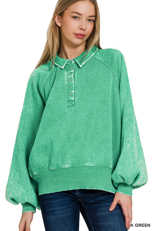 Slip into effortless style with this acid-wash fleece henley—a laid-back pullover that's as comfy as it is cool. Featuring a collared neckline and button-up front, it's perfect for those days when you want to look put-together without trying too hard. Crafted from a cozy cotton-polyester blend, each piece boasts its own personality with unique color variations. Approximate measurements: 24" body length and 51" bust (based on S/M sizing).