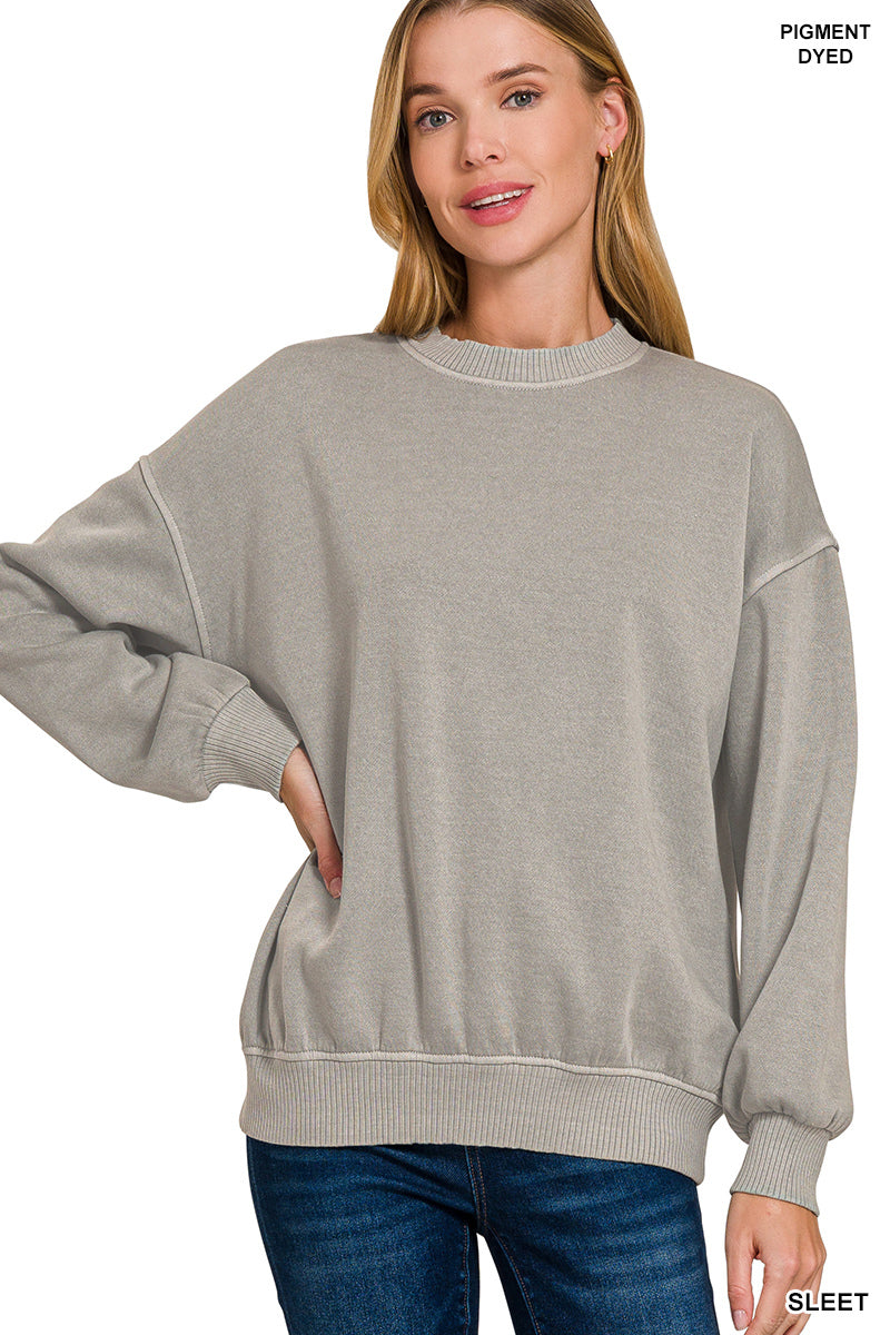Wrap yourself in cozy vibes with our Core Comfort Sweatshirt—a pigment-dyed fleece pullover that's anything but basic. The oversized silhouette gives you that effortlessly relaxed fit, while the rich, mottled pigment dye creates a uniquely textured look that gets better with every wear. Soft fleece keeps you snug without the bulk, making it perfect for lazy days, coffee runs, or just living your best life. Layer it, lounge in it, love it.