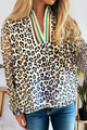Embrace your wild side with this playful blouse featuring bold leopard print contrasted by chic stripes. The flattering V-neck design adds a touch of flair, making it perfect for turning heads whether you're out on the town or having a casual day with friends. This top effortlessly blends fun patterns for a look that’s as adventurous as you are.