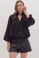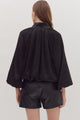 This playful solid balloon sleeve V-neck top brings a fun twist with its pleated shoulder detail and gathered back yoke. Lightweight and woven, it’s lined to keep things smooth and non-sheer, making it perfect for layering or wearing on its own with a flirty vibe. Ready to add a dash of charm to your wardrobe!