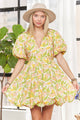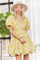 Get ready to dazzle in the Julie Dress! This stunning Julie Dress in vibrant yellow will have all eyes on you. The perfect combination of style and comfort, its puffed sleeves and floral design will make you stand out in any crowd. Elevate your wardrobe with this must-have piece!