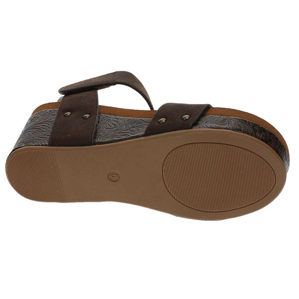 Devon Wedge in Chocolate Embossed - 7.5 is backordered and will ship as soon as it is back in stock.