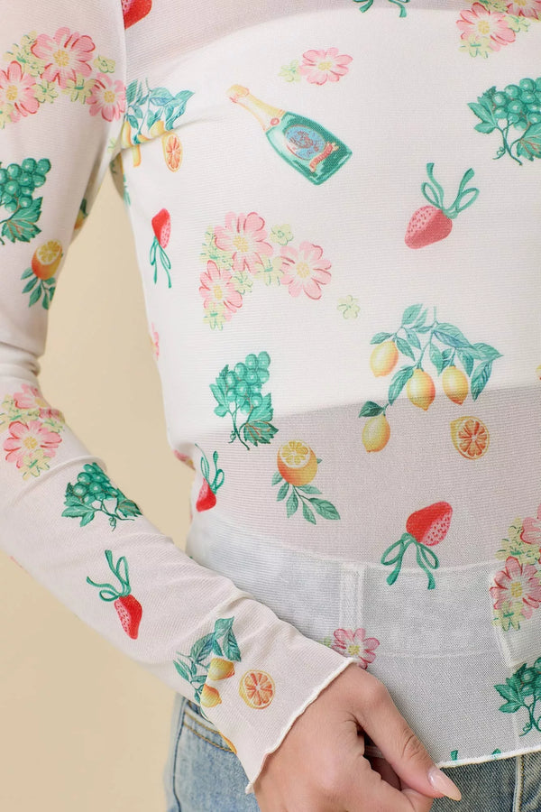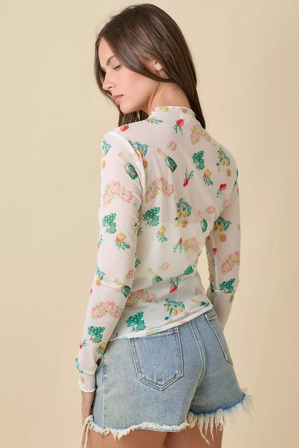 Our Vintage Mesh Top offers a classic and elegant look to this mesh blouse. The vintage print adds a touch of sophistication and charm to the long sleeve blouse.