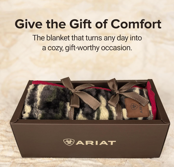 Cozy meets camo with the ARIAT Snuggle Quilted Blanket, 50" x 60". This lightweight, soft, and fluffy throw keeps you warm and comfy, all packaged in a gift box—perfect for hunting season snugglers!