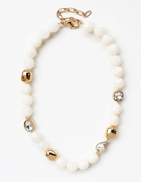 Cream Stone and Gold with Rhinestone Accent 16"-18" Necklace