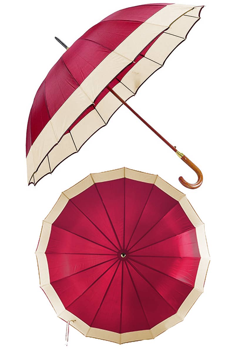 Extra Wide Stripe 16 Panel Wooden Handle Umbrella