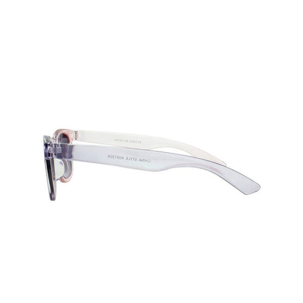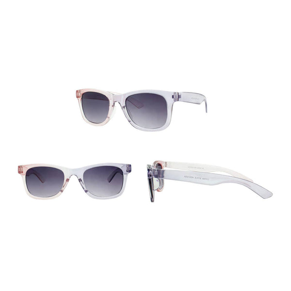 Provide your tween girl with stylish and durable protection from the sun with these Kids Sunglasses. Made with polycarbonate frame and temple materials, these sunglasses feature UV400 shatterproof polycarbonate lenses in a variety of colorways including smoke gradient lens with a shiny light pink to lilac gradient frame and temple. Each set comes with a cute rainbow-themed case and includes a Dazey Shades hang card and UV400 sticker for added appeal. Get your hands on this 4 piece set now!