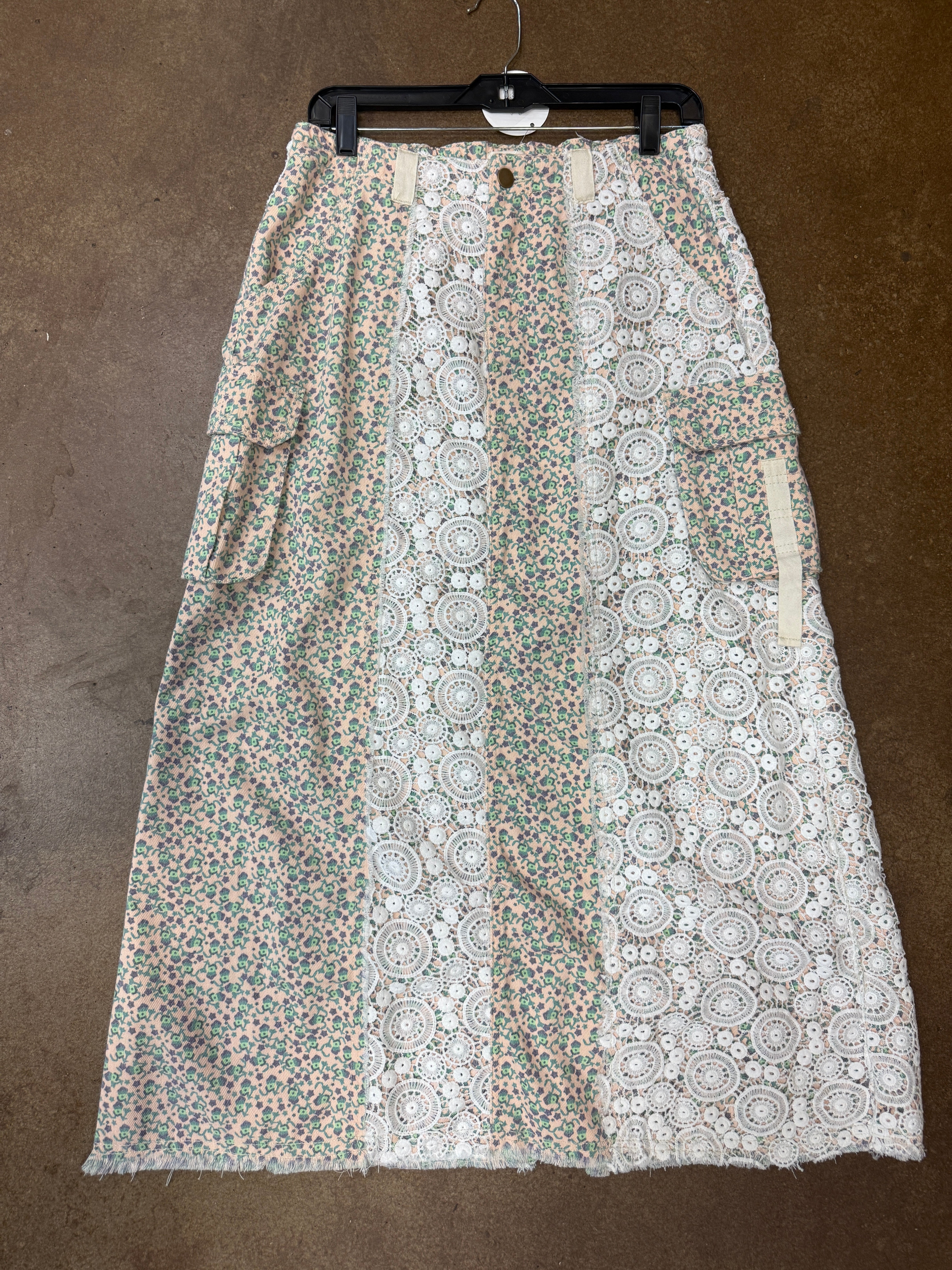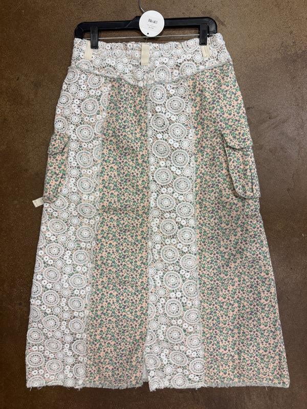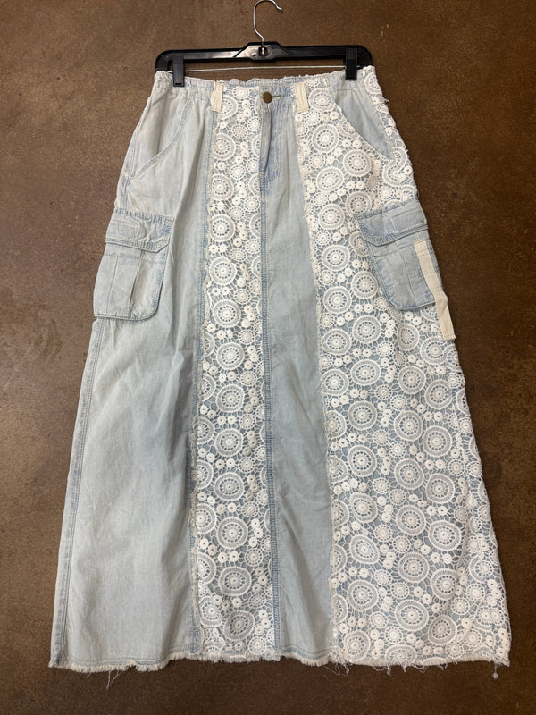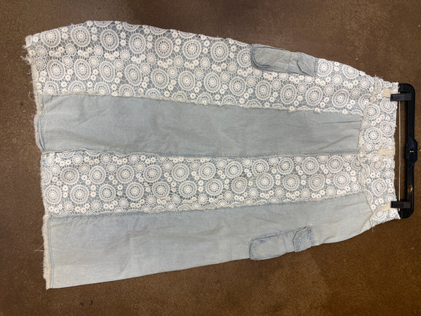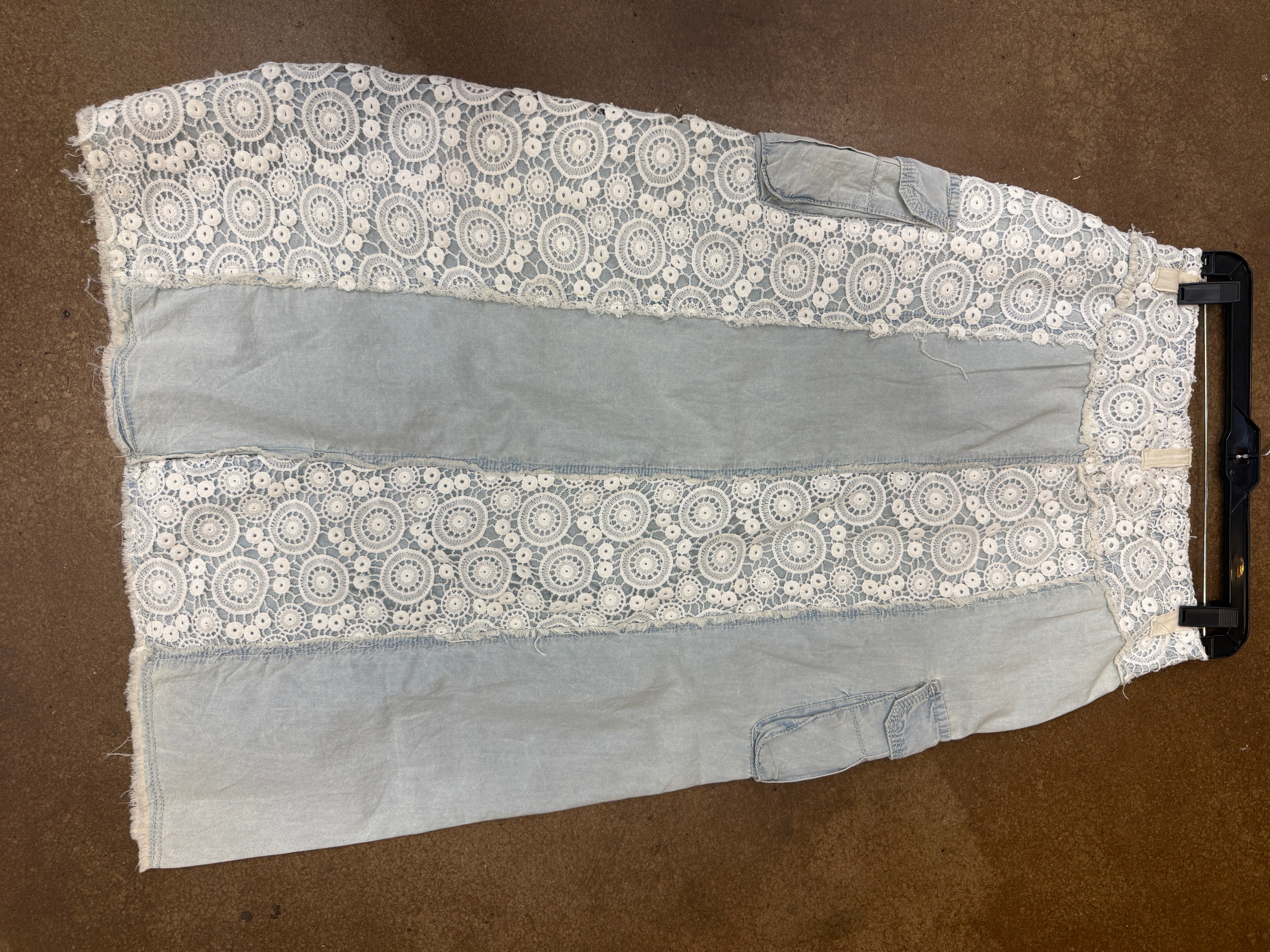 The Meadow Lace Skirt combines classic denim with delicate crochet detailing for a unique, vintage-inspired look. Featuring practical pockets and a flattering A-line silhouette, this skirt offers both style and comfort. Choose from light denim or a charming floral pattern to effortlessly elevate your wardrobe with timeless appeal.