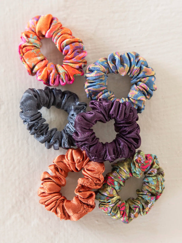 Mini Satin Scrunchies - Set Of 6 - Berry