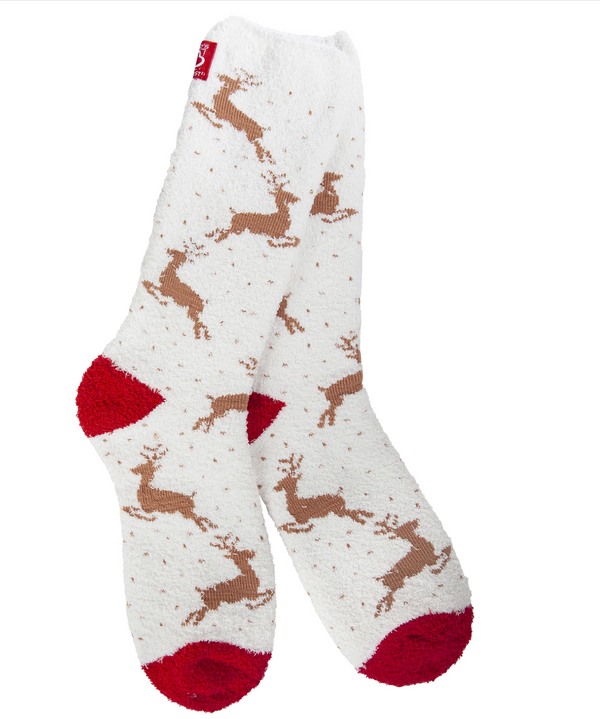Warm and cozy are just a few words that describe our Reindeer Holiday Cozy Crew Socks. Limited supply so go ahead and treat your feet this season. Great stocking stuffers.