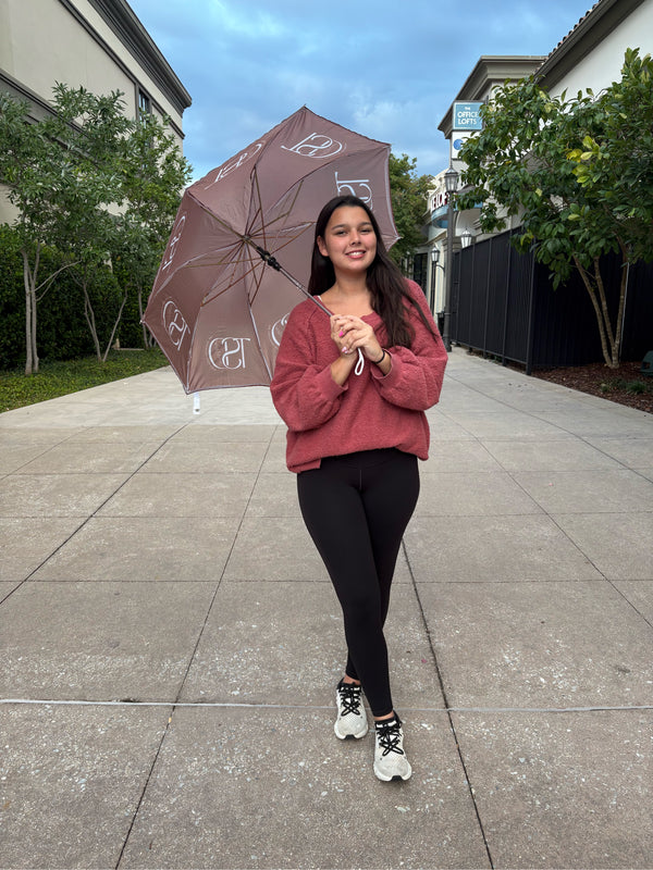 Stay dry and stylish with the TSD Logo Umbrella for Sun, Rain & Travel 34". Crafted from sturdy, high-quality polyester, it's ready to tackle rainy days while letting you proudly show off your favorite boutique. Plus, it comes with a handy umbrella cover to keep it neat and easy to carry.