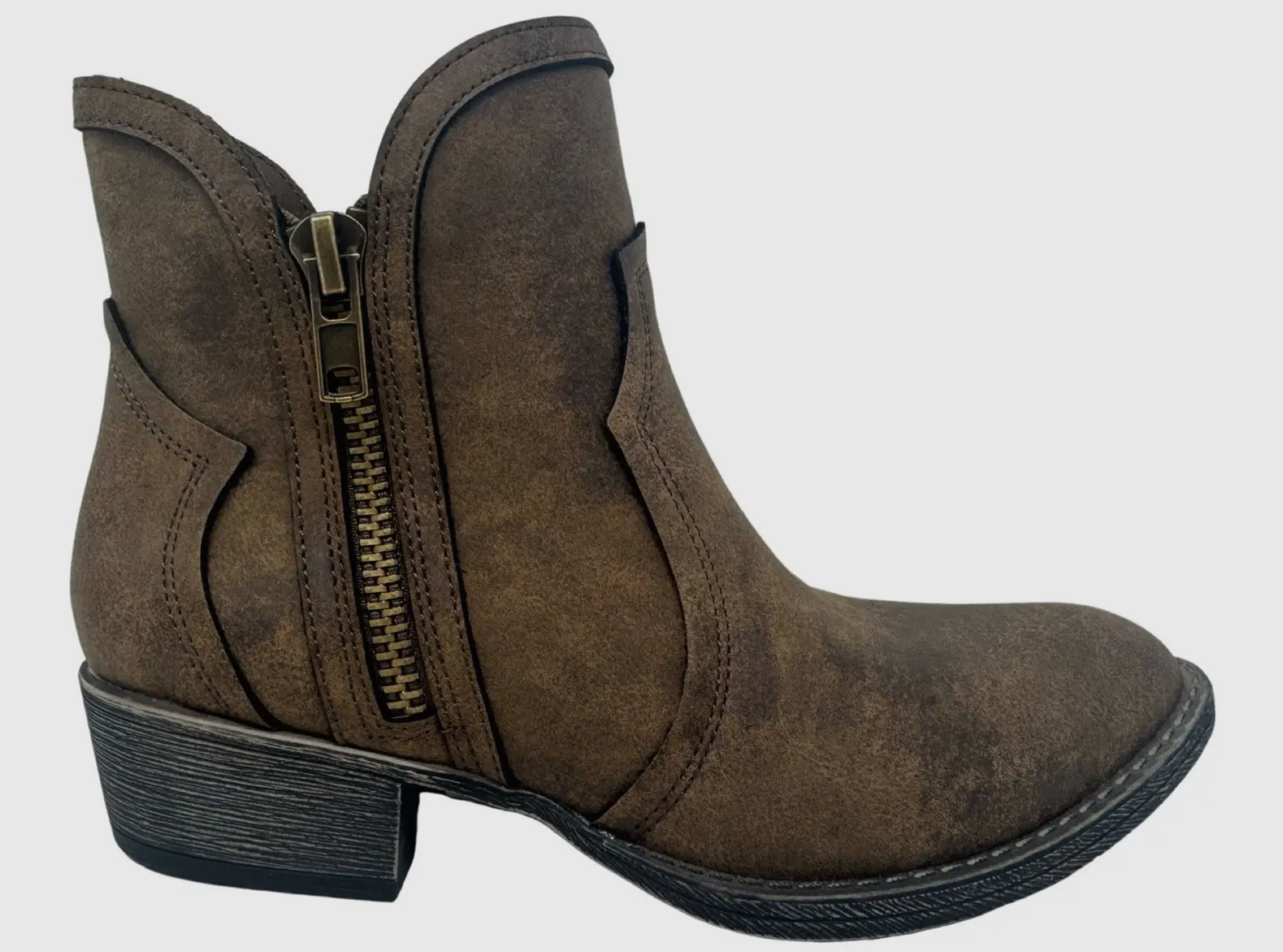 Very G's Evie 2 Round Toe Booties are crafted from high-quality faux leather, these booties feature an elegant overlay detail that adds a touch of sophistication, while the classic round toe design ensures a timeless look. A convenient zipper closure allows for easy on-and-off wear, adding to the overall versatility of this stylish pair.