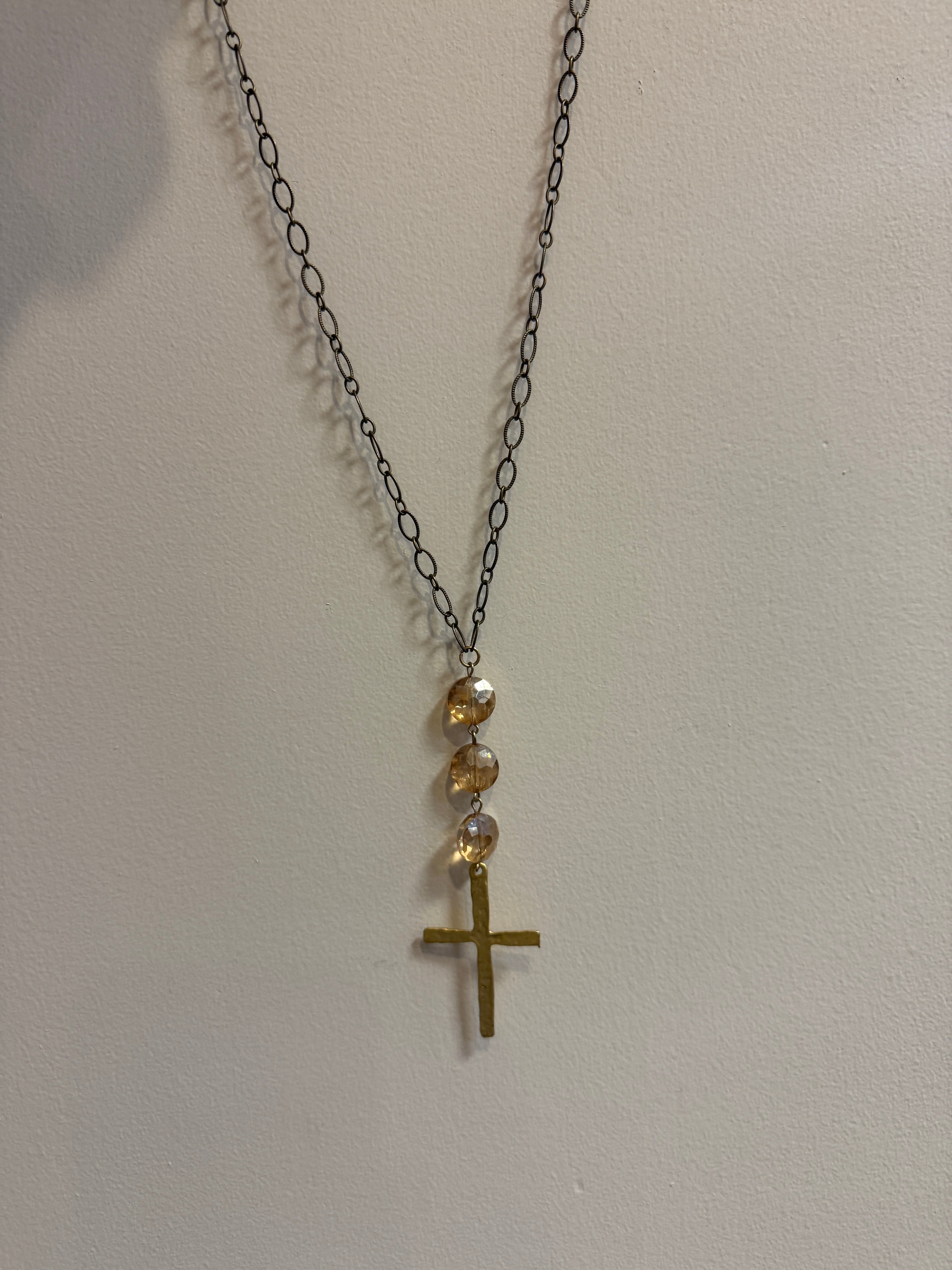 Add a pop of color and sparkle to your look with the Triple Play 3 Bead Cross Necklace. Featuring three vibrant orange translucent beads that link a shining gold cross, this long chain necklace effortlessly blends fun and faith. Perfect for layering or wearing solo, it’s a playful way to brighten any outfit with a touch of sunshine and style.